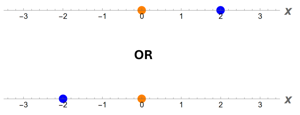 Ancak yine de soyut bir ilginçliğe dikkat çekilebilir çünkü parçacık (henüz) merkeze ulaşmadan önce Şekil 3’ün üst ve alt kısımları birbirinden farklıdır ancak parçacık tam x=0 konumuna ulaştığında süperpozisyondaki iki olasılık da aynı parçacığı aynı yerde tanımlar. Bir bakıma bu iki olasılık birbirine kavuşmuş olur.